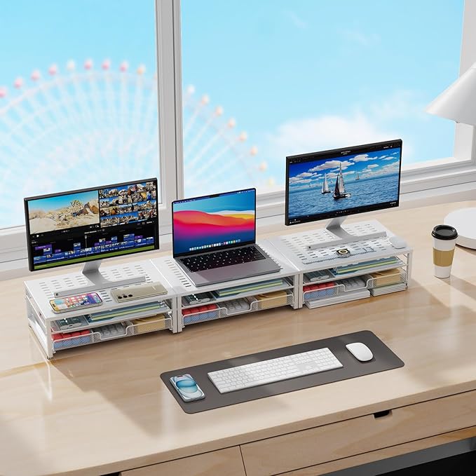 - 【Reduce fatigue】: The monitor stand raises the monitor to a comfortable viewing height, relieves stress on the neck, shoulders and back, and improves comfort and creativity throughout the day.