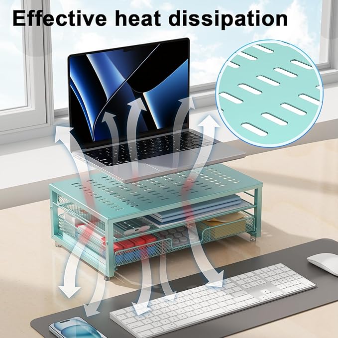 - 【Powerful and stable】: The monitor riser is designed with ventilated heavy steel plates and steel legs, which has a very large load-bearing capacity and effectively prevents equipment from overheating. Non-slip rubber pads provide stability during work.