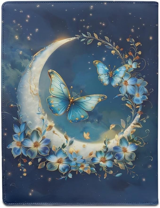 Cozeyat Padfolio Portfolio Leather Binder for Women, Interview Legal Document Organizer, Moon Butterfly Business Card Holder Letter Sized Writing Pad File Folders
