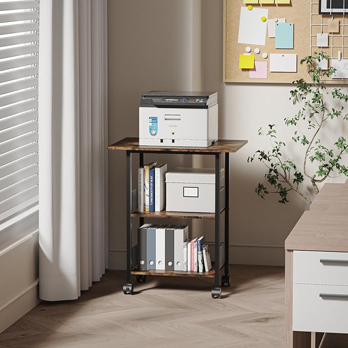 - 【ROLLING OR FIXED】This rolling printer cart features 4 wheels (2 lockable) and 4 stabilizing feet, providing both mobility and stability for secure, convenient relocation. Perfectly designed for home offices and small spaces, it maximizes efficiency while keeping your workspace organized.