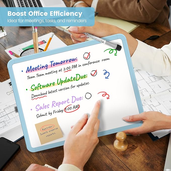 - Double-Sided Design, Double the Space: Unlike other small whiteboards, our double-sided whiteboard offers twice the writing area, making it ideal for organizing schedules, jotting down ideas, and managing multiple projects. It's the perfect family organizer and office whiteboard, enhancing productivity and creativity.