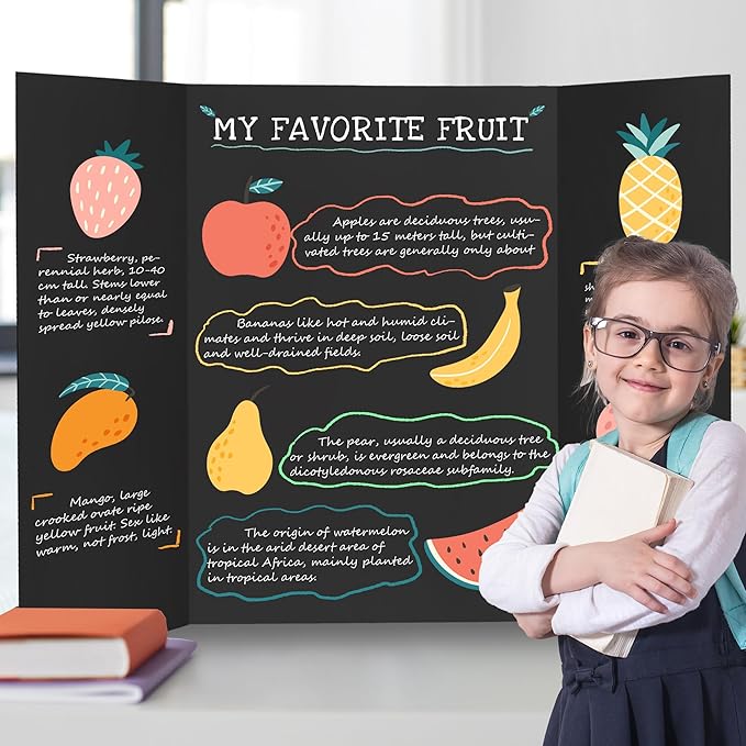 - Easy for Write: The tri-fold display board has a smooth black surface, and is suitable for a variety of writing instruments such as markers, chalk, watercolor paints, crayons, and paints
