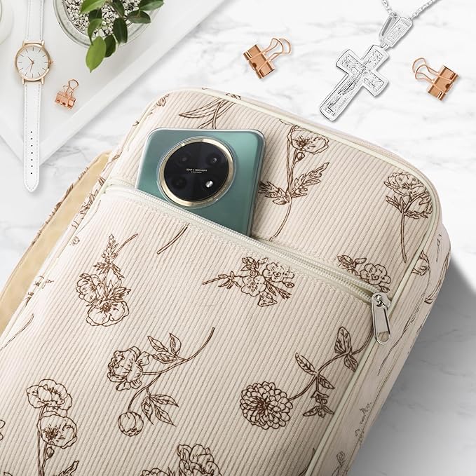 - Large Bible Case for Women:There are many pockets for storing stationery inside the Bible cover, allowing you to neatly store pens, bookmarks, stickers, notebooks and highlighters; the front pocket with a zipper on the outside can store your mobile phone or wallet