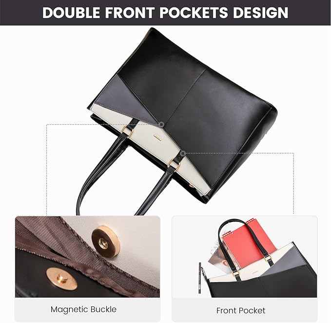 - Premium Durable Material Laptop Bag:This computer tote is crafted in durable, water-resistant, scratch-resistant PU Leather and polyester lining. Top smooth metal zipper for easy opening. Metal feet base protects your bag from damage.