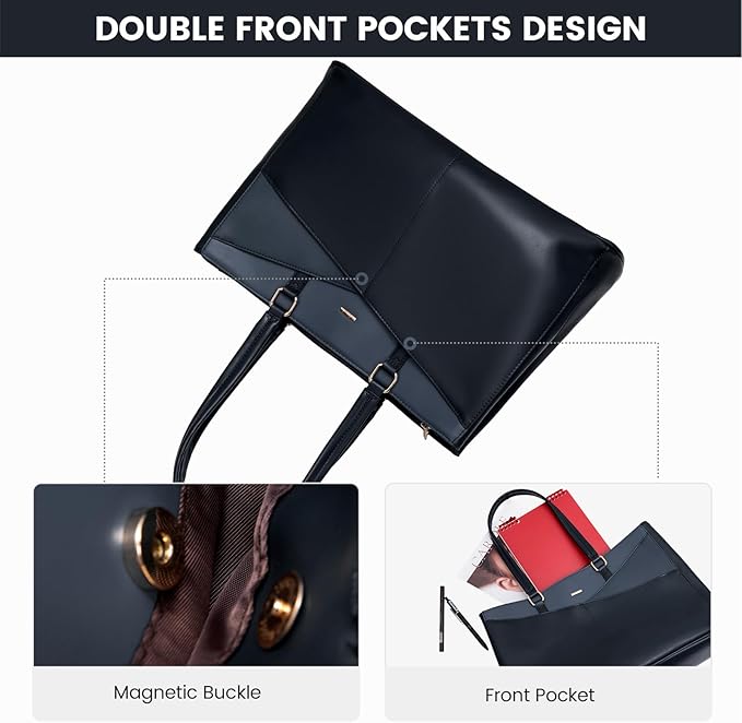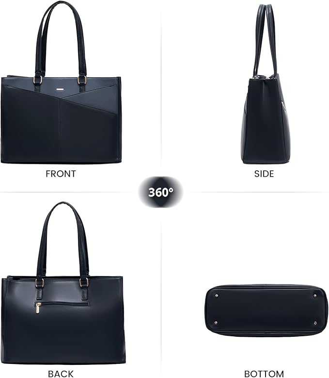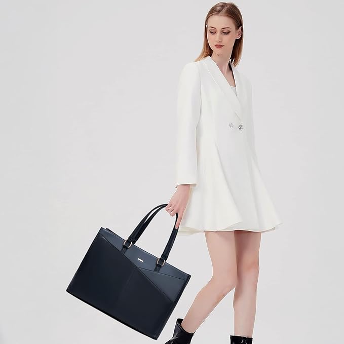 - Premium Durable Material Laptop Bag:This computer tote is crafted in durable, water-resistant, scratch-resistant PU Leather and polyester lining. Top smooth metal zipper for easy opening. Metal feet base protects your bag from damage.