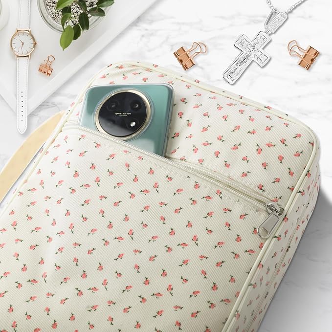 - Large Bible Case for Women:There are many pockets for storing stationery inside the Bible cover, allowing you to neatly store pens, bookmarks, stickers, notebooks and highlighters; the front pocket with a zipper on the outside can store your mobile phone or wallet