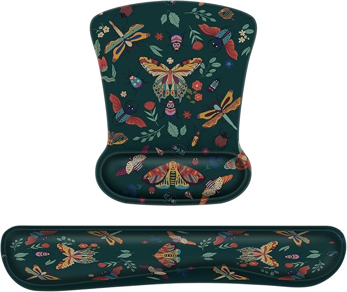 iCasso Ergonomic Mouse Pad with Wrist Rest, Keyboard Wrist Rest Mouse Wrist Rest, Made of Memory Foam, Easy Typing and Relieve Wrist Pain, Perfect for Computer Keyboard Office(Green Butterfly)