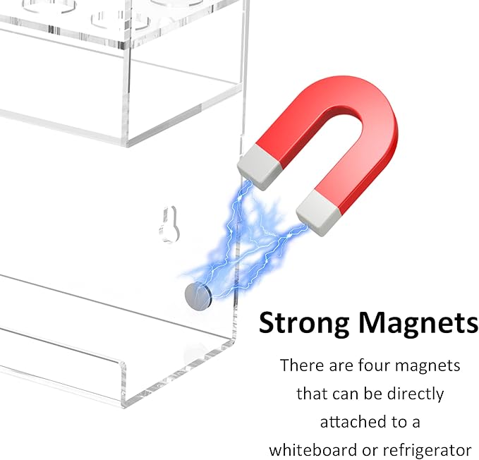 - Powerful Mangnets: The Hongtuocb Acrylic Marker Organiser Stand has four powerful magnets that attach securely to a variety of magnetic surfaces such as fridges, classroom whiteboards, school lockers, dishwashers, washing machines and more. Size: 6x3x7 inches