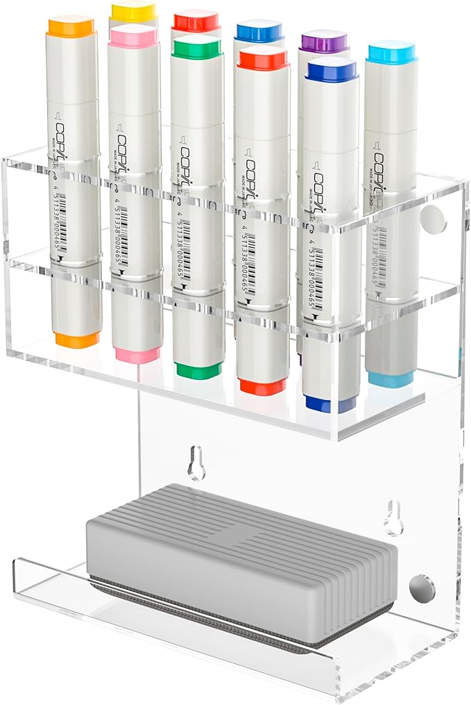 - Stability & Durability: Hongtuocb Magnetic Dry Erase Marker Holder is made of clear and durable 98% pure acrylic.There are 10 round slots with a bottom shelf for up to 10 dry erase markers and a separate space for an eraser.