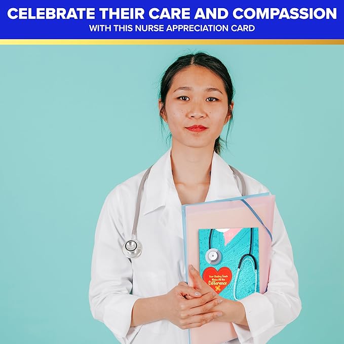 - CARING WORDS FOR NURSES - This thank you nurse card captures the compassion & commitment of nurses, featuring a vibrant heart cutout with gold foil accents. The nurse greeting card comes with a printed message that conveys your heartfelt gratitude.