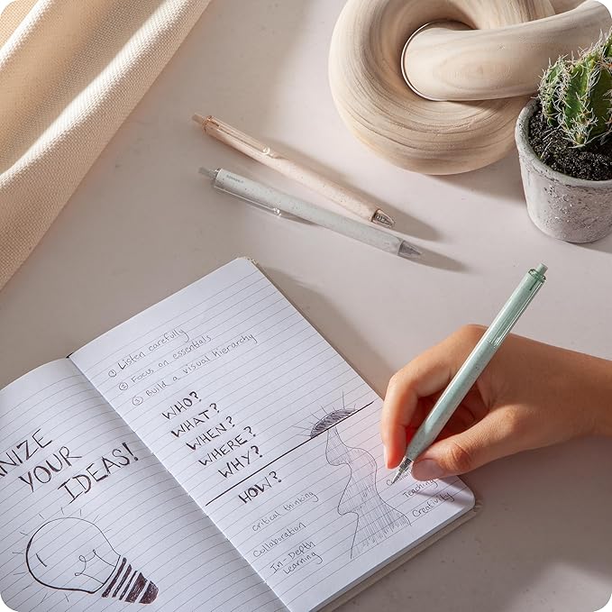 - SOPHISTICATED DESIGN: Constructed from plant-based materials, these chic flair pens feature subdued yet eye-catching hues of sage green, blue, blush pink, and cream
