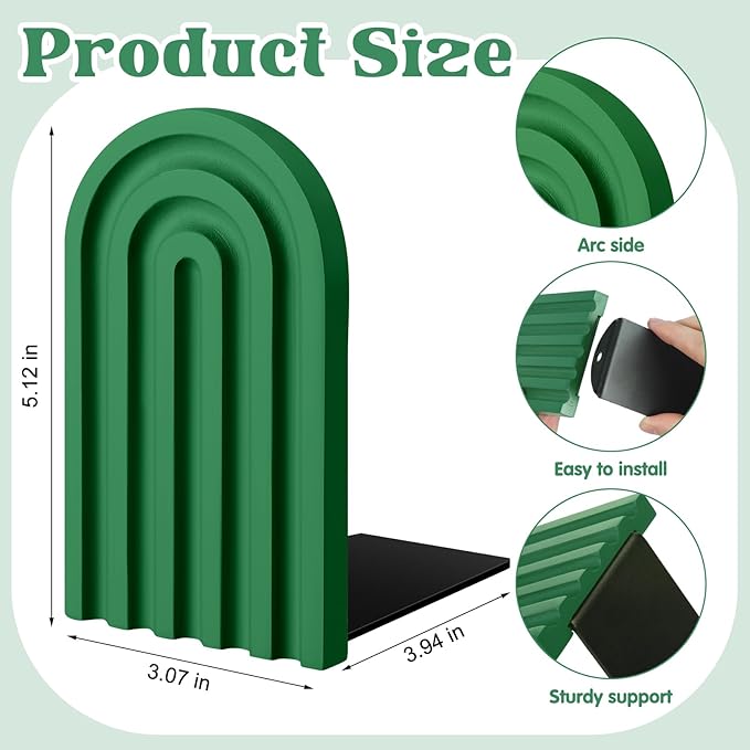 - Bohemian and Minimalist Design: our non-slip bookends are designed with rainbow shapes and 4 beautiful color systems, each with exquisite carvings, which can add elegance, simplicity and natural style to your bookshelf, decorate your office and study room