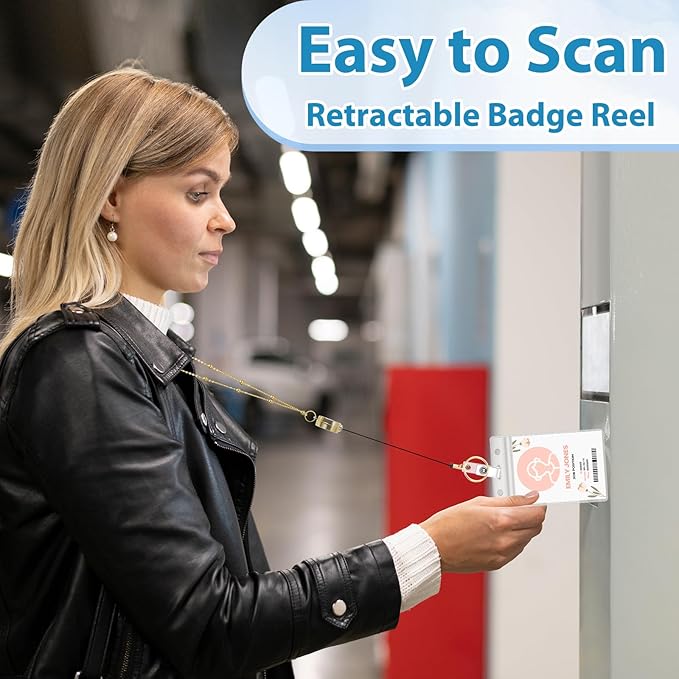 - 【Adjustable】Work lanyards are 33.5 inches long, and the badge reel can be stretched up to 13.5 inches so you can easily scan your ID or card without getting close to the scanner