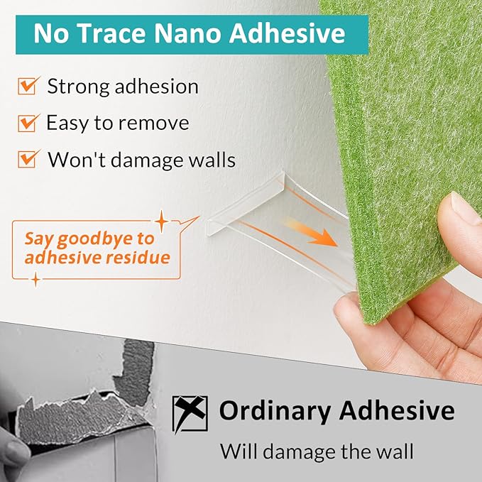 - 【Strong Adhesion & Safe Removal】: Acrylic adhesives with the latest nanotechnology have longer lasting strong adhesion, that prevents the bulletin board from falling off the wall, while being safely removed from the wall without leaving residue or damaging the surface of the wall.