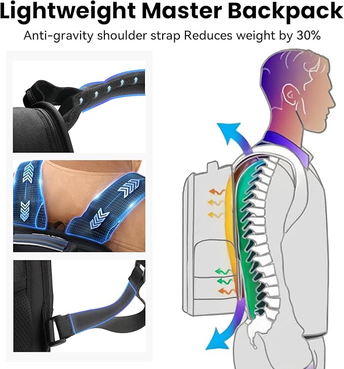 - 【Storage Space】This business laptop backpack for men has external dimensions of 12x5.5x16.5 inches, Capacity: 20 L, Weight: 3.2 lbs. Designed with 3 main compartments and up to 10 pockets of different sizes, the travel backpack not only easily holds a laptop and other essentials, but also has an overall lightweight design that makes it an ideal companion for long commutes or business trips