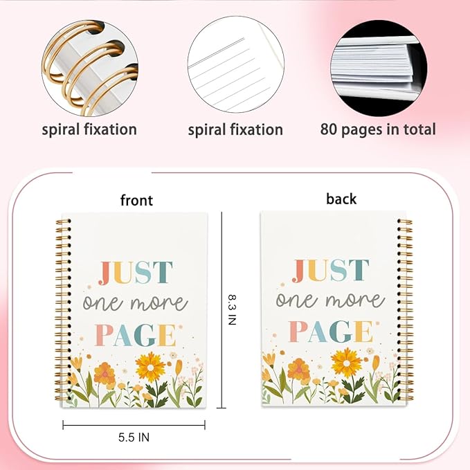 - ·Strong Spiral Binding: make the notebook completely flat when opened, easy to write on both sides of the page, without any discomfort. The compact size of the notebook makes it easy to carry in your bag or backpack, ensuring that you always have a convenient place to jot down your thoughts.