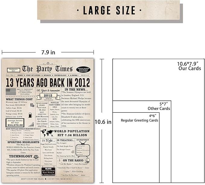 - This large 13th birthday card features a vintage newspaper design, showcasing important events, movies and sports events from 13 years ago.