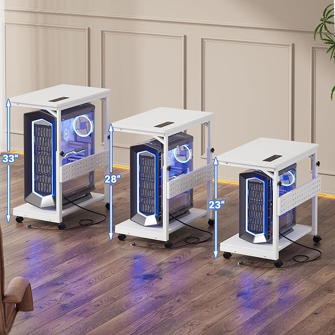 - Manual Adjustable Heights - Features 3 heights to suit your desk heights. From 23" to 28" and 28" to 33", you can fix the height by turning the knob easily. Then you can place this PC tower stand under your desk for space saving & can be pulled out to add extra workspace.