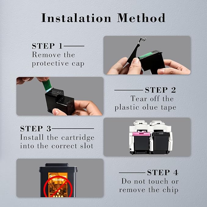 - Note: Please do not touch and remove the chip. Do not touch the ink nozzles