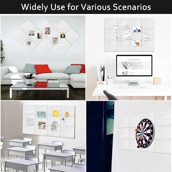- [Multiple uses] Felt bulletin boards can be used as large cork board walls, school bulletin boards, memory walls, office bulletin boards, wedding planning, birthday parties, family daily memos, dart wall protective pads, jewelry wall storage, soundproof boards, background decorations, and more.