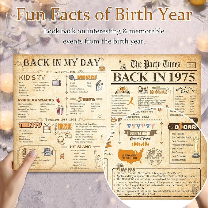 50th Birthday Card for Men Women, 3D Pop Up 50th Birthday Gifts Cards for Him Her, Back In 1975 Funny 50 Year Old Birthday Decorations, Classy Vintage