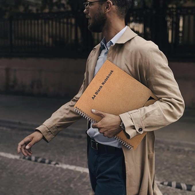 - 【A4 BLANK NOTEBOOK】Package comes with 2 pack spiral bound sketch books with sturdy double-wire binding and blank pages. 180°lay-flat design offers you comfortable writing experience. These drawing pad can be used on their own or as refill to insert into your leather cover. This a4 sketchbook measures 11" x 8.5", great for drawing, sketching, writing, taking notes and more