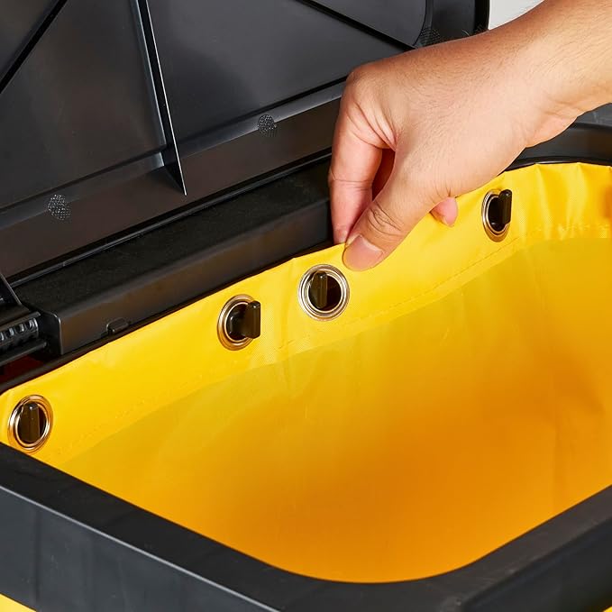 - SECURE LID: The lid for this housekeeping janitorial cart covers the bag containing waste or soiled linens and minimizes unpleasant odors. Built-in mop and broom holder to keep tools in place!