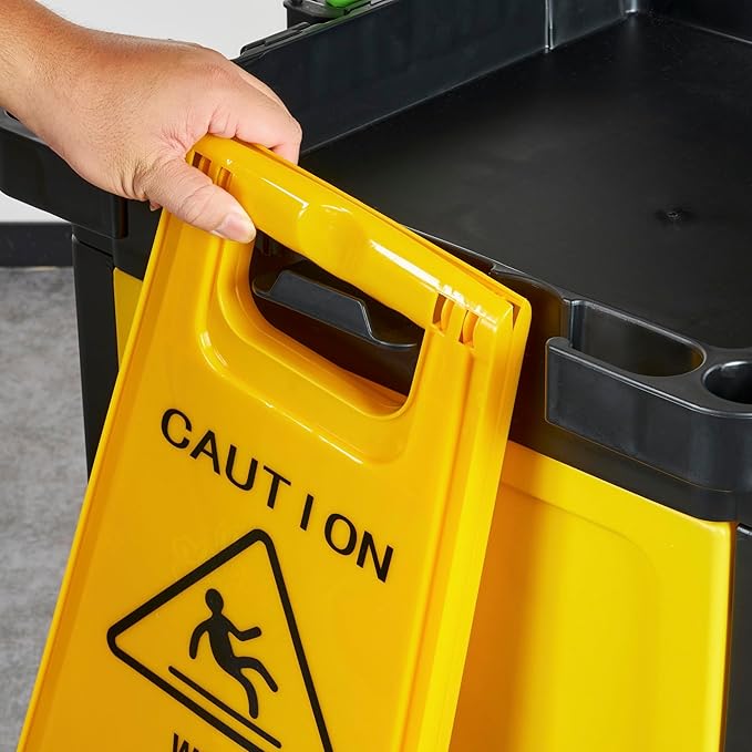 - MAXIMUM EFFICIENCY: With 3 shelves, this commercial cleaning cart offers room for cleaning supplies and equipment, ensuring everything is at your fingertips. Cleanup has never been this easy!