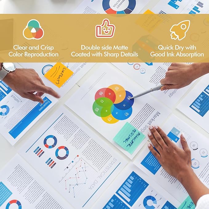 - Double sided photo quality matte papers perfect for wide color gamut printing of photos, brochures, charts, arts, posters, calendars, DIY cards, training manual, graphs and presentations etc