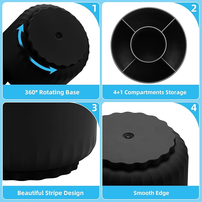 - 【Space-Saving】: The special round design of the organizer was designed to make items easy to reach, even when stored on upper shelves; Divided into 5 compartments, this spinning container makes it easy to separate and store a wide variety of items; Use this convenient storage to keep children's crafting items all in one place; Great for school supplies, Perfect for home or commercial workspaces