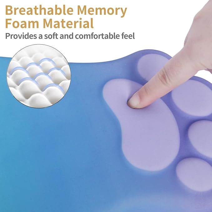 - 【Non-Slip PU Base】Gradient green cat paw ergonomic mouse pad with wrist rest and keyboard wrist rest feature a anti-slip PU base can grasp firmly in place on any surface, preventing slipping or sliding during use.The anti-slip bottom ensures the mouse pad with wrist rest remains stable,whether you're working on a desk, bed, or couch,the pad stays firmly in place