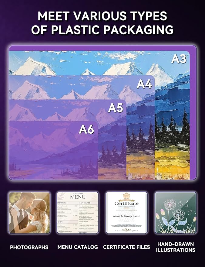 - 【Portable 13-inch Laminating Machine】: Our laminator machine with laminating sheets accommodates paper and photos of various sizes, from A3/A4/A5/A6. It's compatible with 3 mil and 5 mil laminating paper, including Legal-sized, letter, business card, and photo-sized paper. For optimal results, make sure to select pouches that are 3-5 mil (80–100 mic) thick