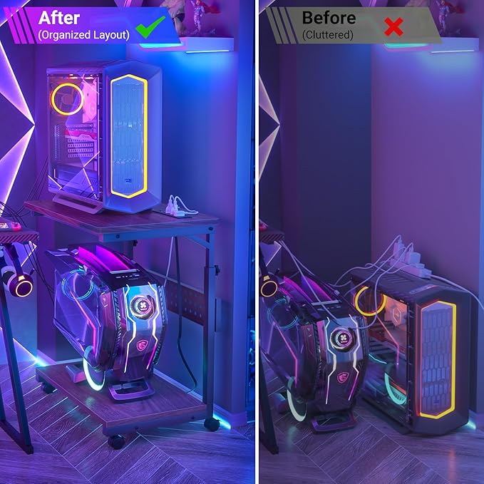 - CPU Holder with Outlets - Built-in useful electrical power outlets and USB ports (3 AC outlets + 2 USB charging ports) for your devices to plug in. It is handy and easier to plug in your computer tower, phone, iPad, or PC monitor. So you can keep cables better controlled.