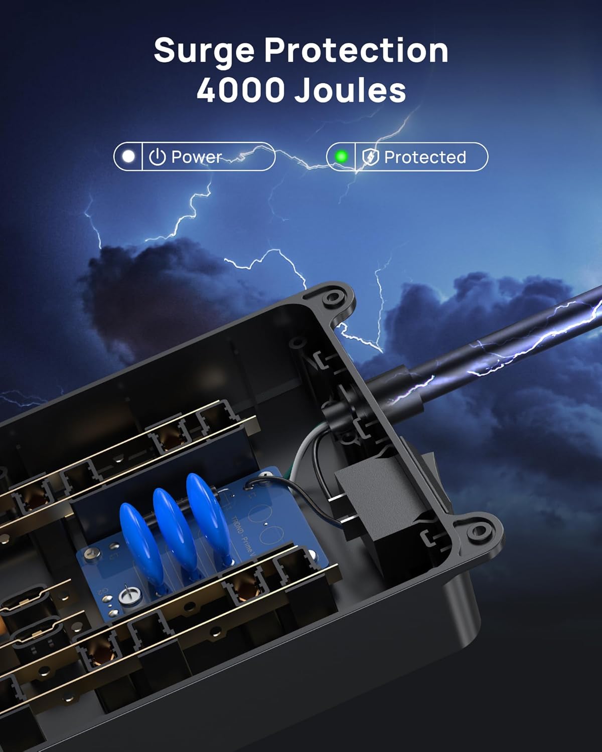 - 4000 Joules Surge Protection: It’s ETL listed, and made of the top-grade ul94 v-0 flame-retardant material. With 4000j surge protection, it safeguards your TV, computers, phones & office equipment from potentially damaging power disturbances, creating peace of mind. it has an on/off switch, which can be used to reset it if you overload it and it "pops" the security circuit.