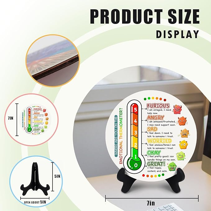 - Size & Material: Ainrvteers emotions wheel is made of high-quality wood. The emotions wheel is about7 inches in diameter and the plastic base is about 5 inches high. The soft and soothing colors make it a great tool to help reduce stress and regulate emotions.
