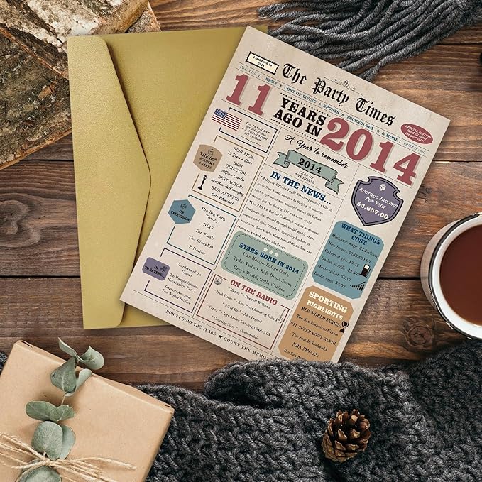 11th Birthday Card, 11 Year Old Birthday Gift for Daughter Son, Retro 11th Birthday Decorations for Boys Girls