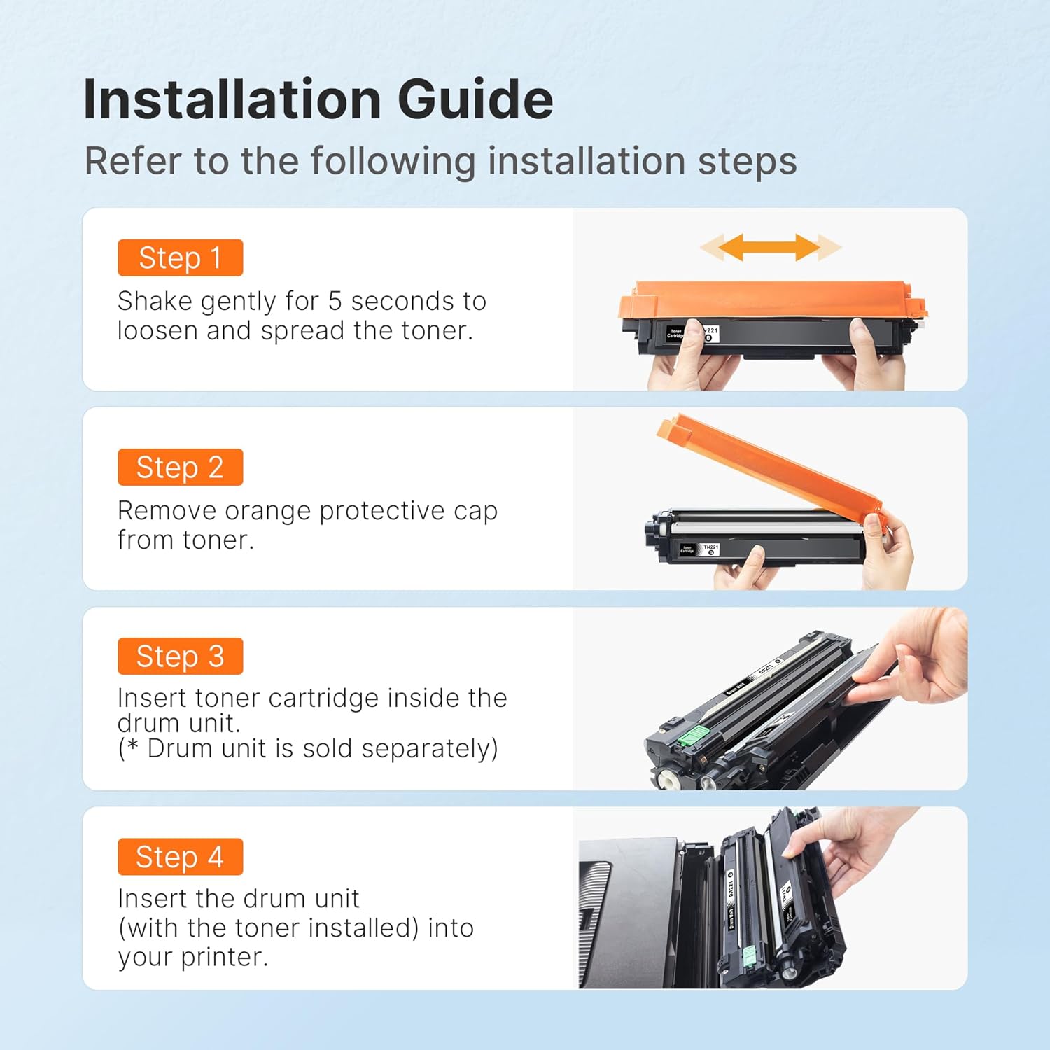 - Color : TN221 TN225 Toner Cartridges