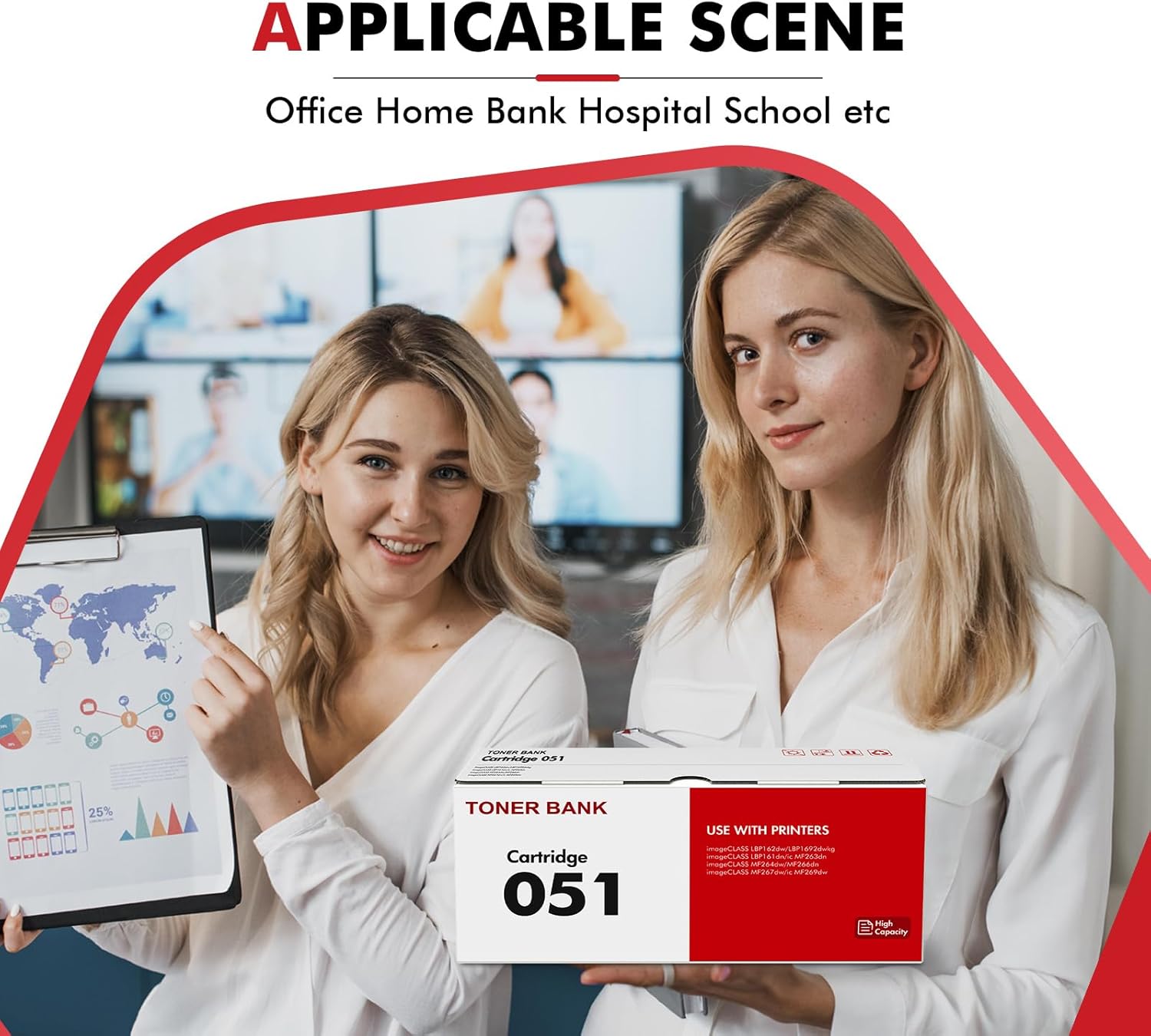 - Included: Toner Bank 2 pack toner cartrigde 051 051H compatible for Canon 051 051H toner cartridge CRG051 CRG-051 CRG 051