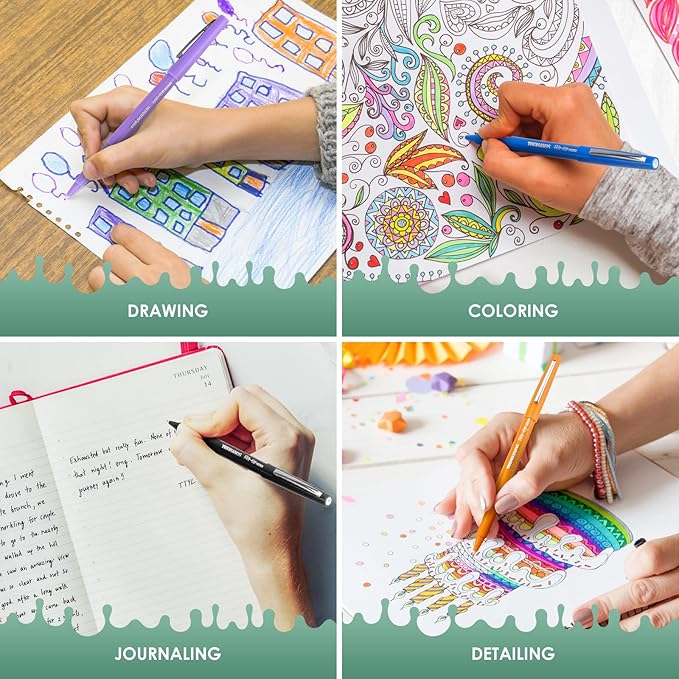 - Versatile Use: Whether you're color-coding your notes, journaling your thoughts, or creating beautiful artwork, TWOHANDS fineliners are the perfect tool for all your creative endeavors.