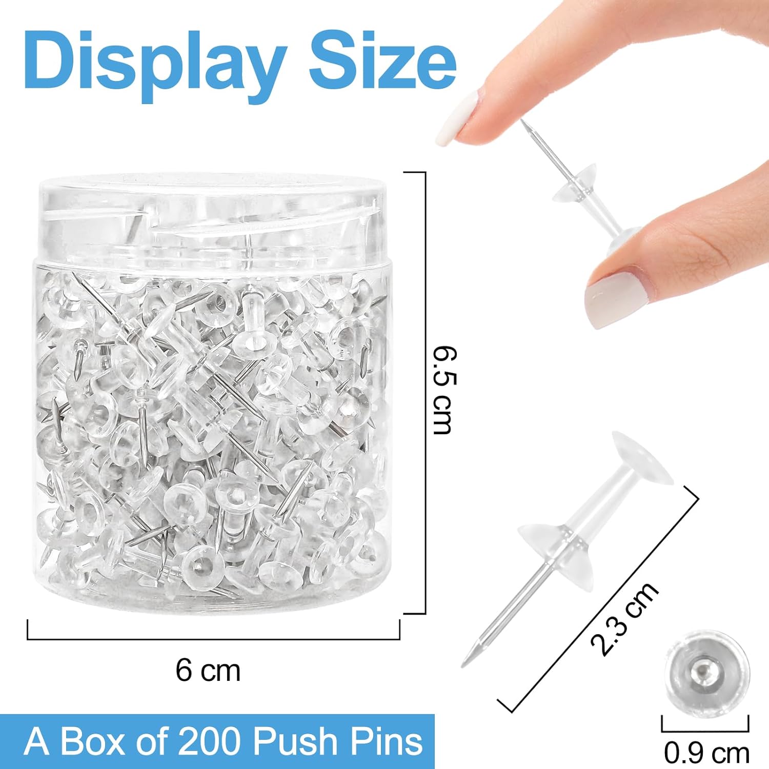 2400 Pcs Clear Push Pins Standard Thumb Tacks with Steel Point and Plastic Head PushPins thumbtacks for Wall, Cork Board, and Bulletin Board