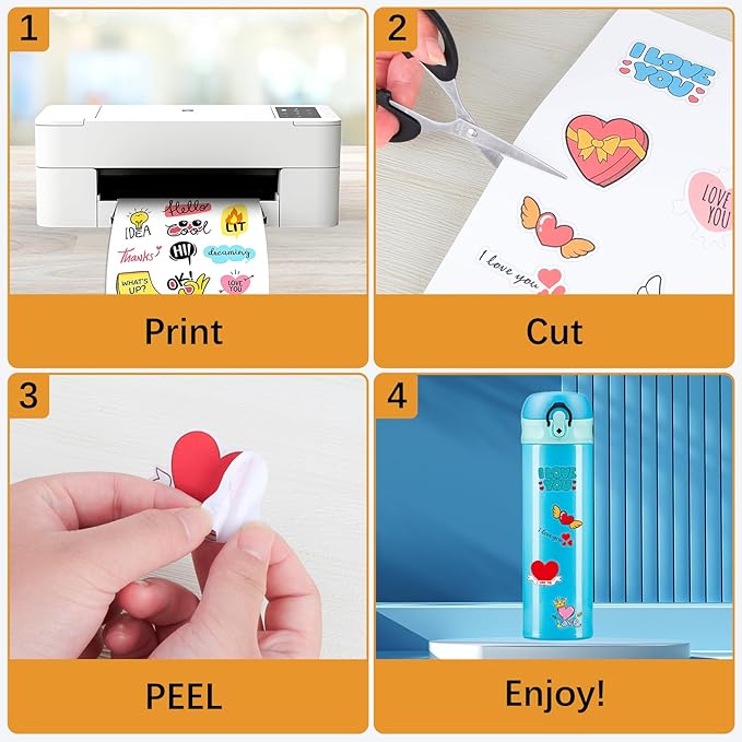- COMPATIBLE WITH YOUR PRINTER: Create high-quality, vibrant stickers with our vinyl stickers for printers, which are compatible with inkjet printers. Each self-adhesive vinyl sticker comes in a standard 8.5x11" size and absorbs ink beautifully for great results