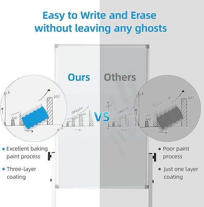 - 【Smooth Writing Surface】The high-end three-layered coated whiteboard easel comes with smooth surface, which brings you a great writing experience, non-glare, easy to wipe without leaving marks. Helps you to perform better in multiple situations