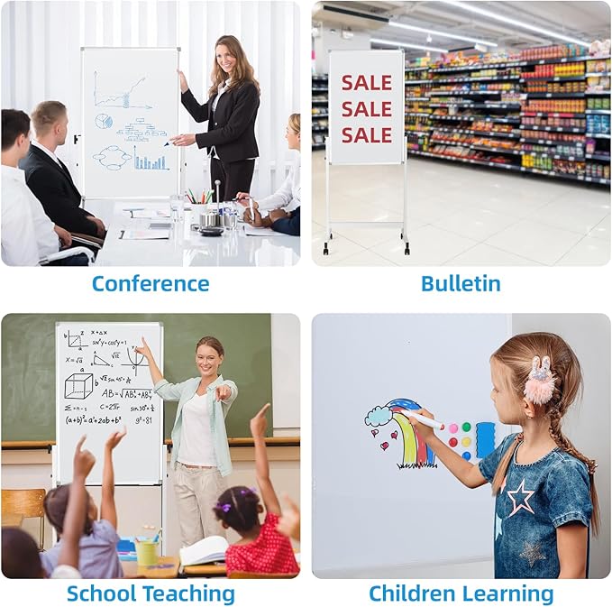 - 【Multipurpose Uses】With little footprint and easy mobility, our portable rolling whiteboard can be used as a school teaching board, office project board, children's learning board, bulletin board, etc. to promote your teaching, presentation and creation