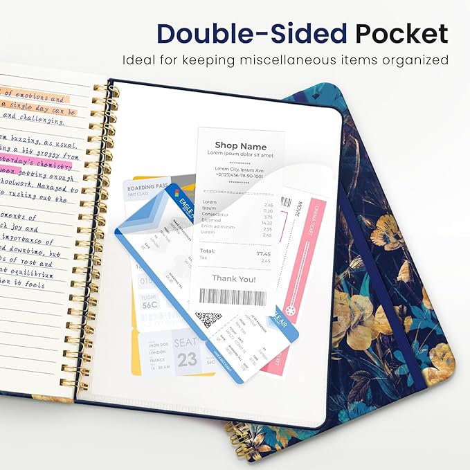 - Streamlined and Practical Design: Featuring 140 lined pages and a 6-page blank table of contents, our notebook provides generous room for note-taking and effortless referencing. An inner pocket safeguards miscellaneous items, while an elastic closure band ensures the notebook remains securely closed when not in use.
