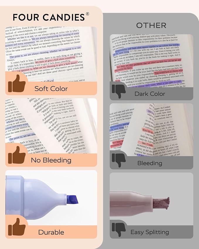 Four Candies 12 Pcs Highlighters Assorted Colors, Cute Pastel Highlighter Set, Dry Quickly, Soft Chisel Tip, Assorted Colors Bible Highlighter for No Bleed, Aesthetic Highlighters for School, Office