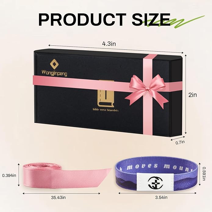 2 Pcs Bible Verse Bracelets,Daily Bible Verse Bracelet,Prayer Hope Bible Bracelets, Christian Gifts for Women , Graduation Gift,Inspirational Religious Gifts, Comes With A 35-inch Ribbon Bow
