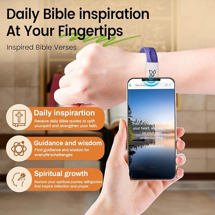 • INNOVATIVE DESIGN: Daily bible verse bracelet is made of high quality polyester elastic material, the bracelet can be used to access bible verses anytime and anywhere via NFC, the elastic process can be adjusted to fit comfortably, it is waterproof, sweatproof and washable