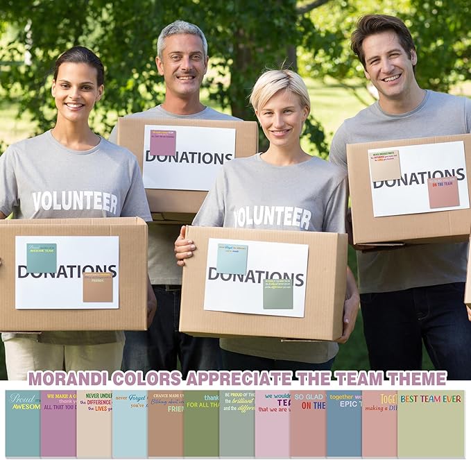 Yinder 24 Pcs Team Sticky Notes Team Appreciation Gifts Bulk Employee Coworker Inspirational Sticky Notes Pad Appreciation Gifts for Teacher Nurse Office Supplies 3 x 3''(Morandi,Appreciation)