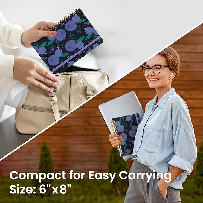 Pretty Cute Lined Spiral Journal Notebook for Women, Aesthetic College Ruled Notebook for Work & Note Taking, A5 Hardcover Journal for Writing, 140 Pages, Blueberry