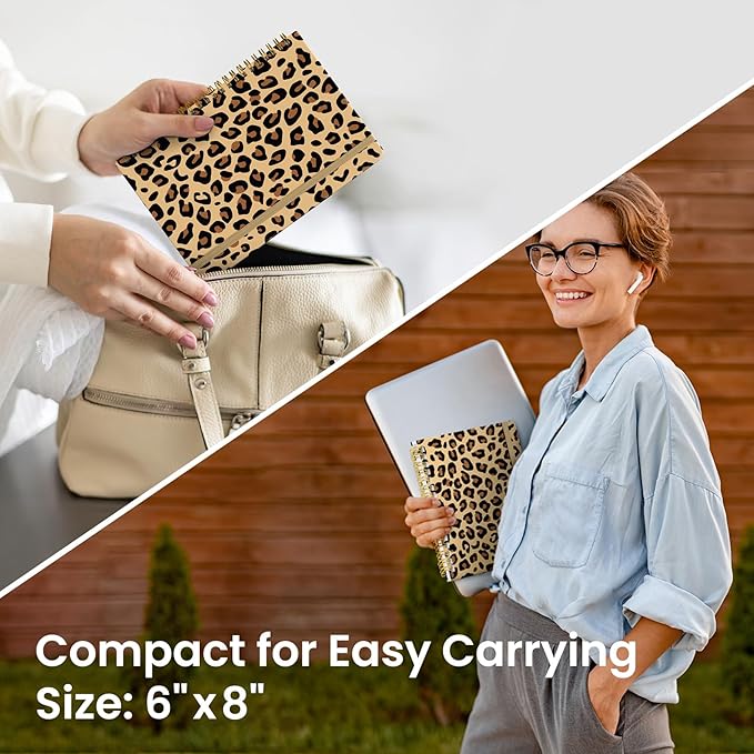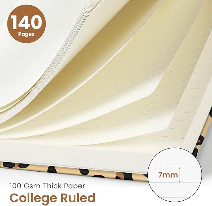 Lined Spiral Journal Notebook for Women, Pretty A5 College Ruled Hardcover Notebook for Work & Note Taking, Cute Aesthetic Journal for Writing, 140 Pages, Leopard